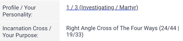 As we talked about in my last email, it corresponds to your profile (the second number in those top four boxes of your chart—your conscious and unconscious Sun and Earth).